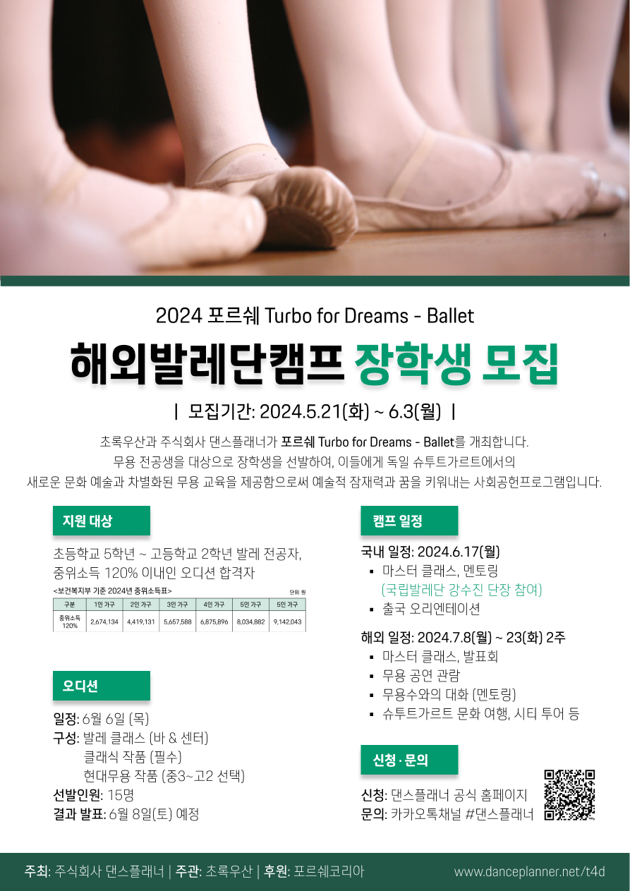 초록우산, 댄스플래너 - 발레 인재 양성을 위해 ‘포르쉐 터보 포 드림 - 발레’ 장학생 모집